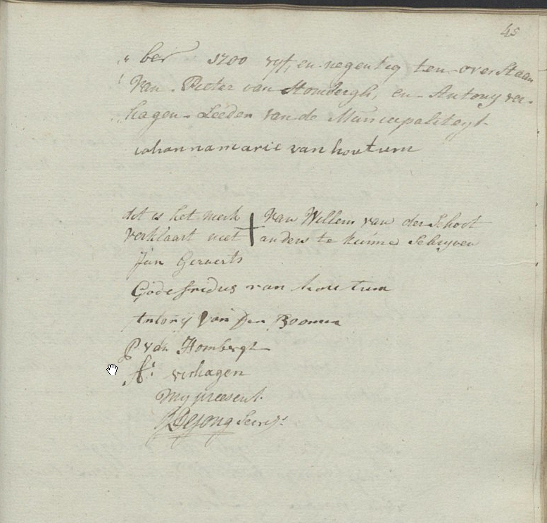 Transportakte verkoop van een huis (385.00 gld) door de familie van Houtum aan Jan Jansse Kluijtmans (p.s.Willem kan niet schrijven)